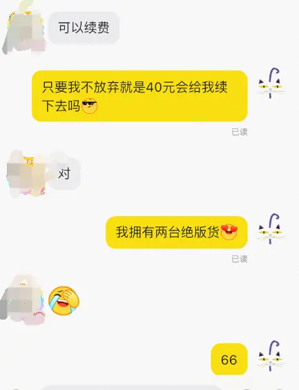 不过也有喜事,喜得两台绝版优质小鸡,大概事情是这样:最近朋友和朋友聊天,我说我有两台40元一年的2g1h的香港主机,独立ipv4,不限流量,速度还可以,朋友说挺便宜,让我介绍,我就去找卖家,结果卖家说这个配置没有了,记得当初购买的时候,卖家就说续费同价,为了再次确认,我特别再次问了下卖家,我的这两台到时候续费是同价吗,卖家说是的,这时候才发现,喜获两个宝贝,卖家承诺说,如果我续费,一直给我按照40元同价续费下去。好吧,确实还不错,有得有失。